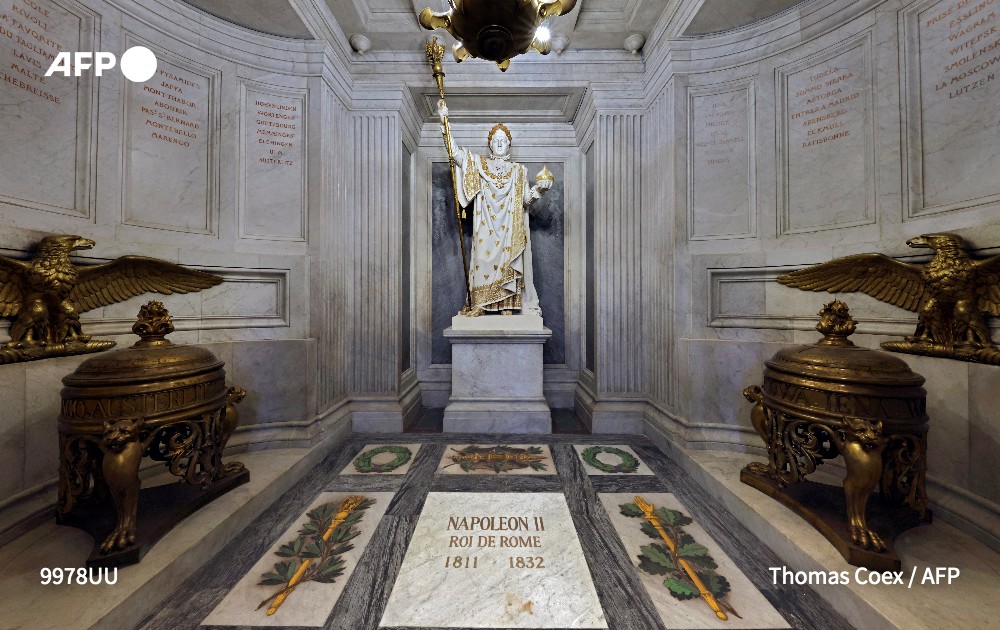 [À LA UNE À 8H] Emmanuel Macron déposera cet après-midi une gerbe au pied de son tombeau, sous la coupole des Invalides. Avant, le chef de l'État prononcera un discours à l'Institut de France #AFP 2/5