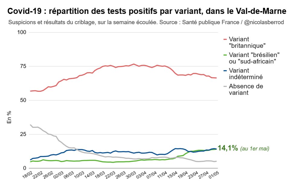 Il cite notamment le Val-de-Marne, où cette part est passée de moins de 5% à 14,1% en un mois. #Covid19