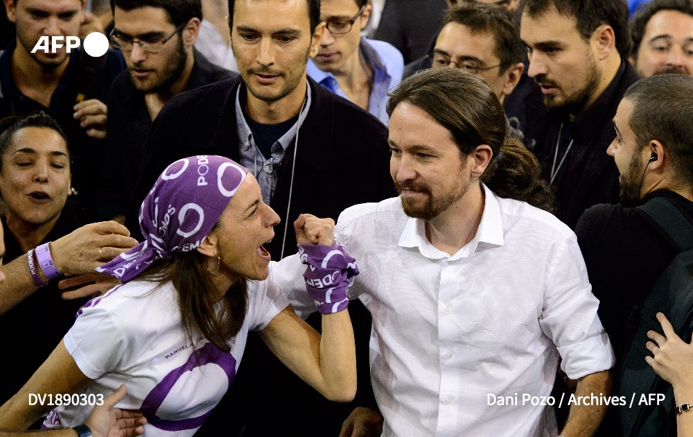 Pablo Iglesias a voulu révolutionner la gauche espagnole, avec pour slogan "Sí se puede" ("Oui, on peut"), avec la création en 2014 de la formation de gauche Podemos, héritière du mouvement des Indignés et des manifestations anti-austérité de 2011 #AFP
