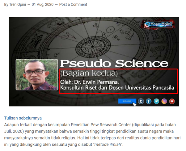 Kita panggil aja Erwin, si bapak ini dari akun media sosial facebooknya, ia lahir pada 15 Agustus 1982, dan tinggal di Jakarta. Dan sampai dengan sekarang masih aktif mengajar di Universitas Pancasila.