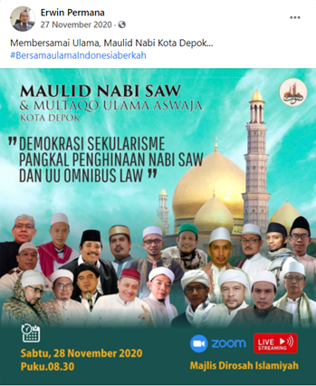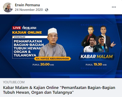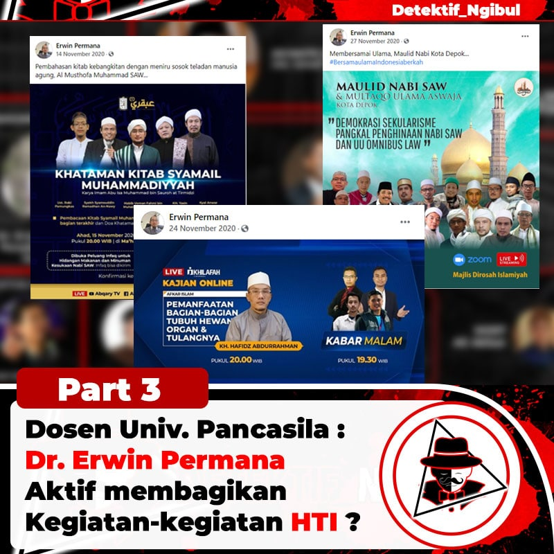 selain itu pada akun facebooknya, Erwin permana juga sering membagikan acara/ kegiatan-kegiatan yang diadakan oleh para tokoh HTI. seperti ini contohnya