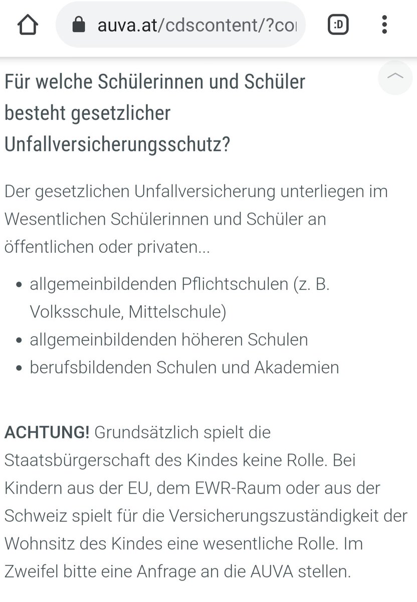 Gesetzlich unfallversichert sind in Österreich alle Schüler:innen, Student:innen nur mit österr. Staatsbürgerschaft und Kindergartenkinder nur im verpflichtenden Kindergartenjahr.