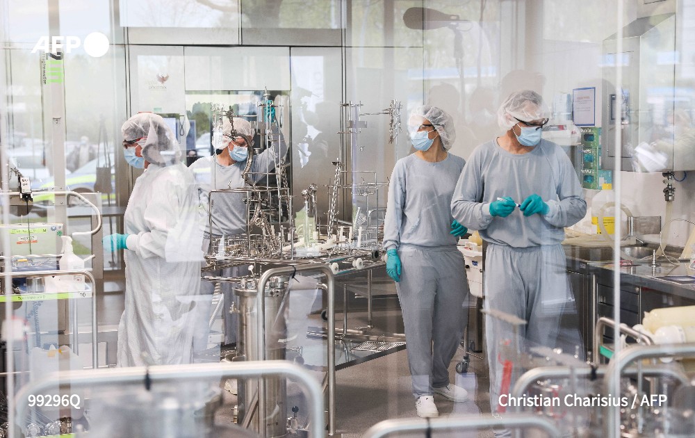 Une pique au Royaume-Uni, qui de facto n'a exporté aucune dose fabriquée sur son sol, et surtout aux Etats-Unis, où une décision présidentielle bloque strictement l'exportation des vaccins et restreint celle des composants vaccinaux #AFP