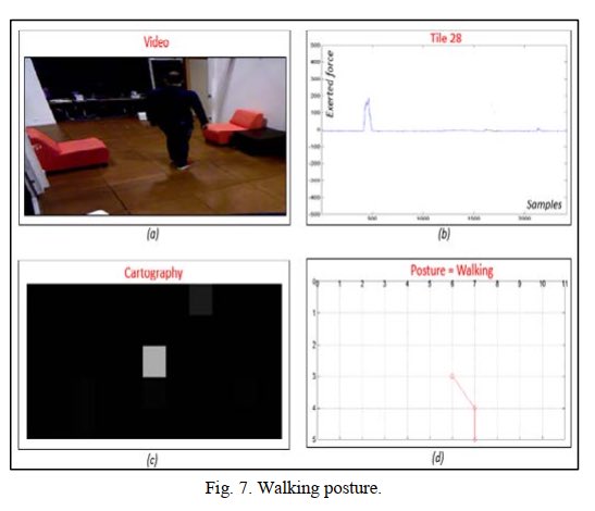 Kotak c menggambarkan cartography, dimana area warna putih itu menandakan ada ada sesuatu di atas lantai, sedangkan warna hitam itu berarti ga ada apa apa (karena ga ada tekanan di lantai). Terakhir, kotak d menggambarkan prediksi aktivitas pemijak lantai.