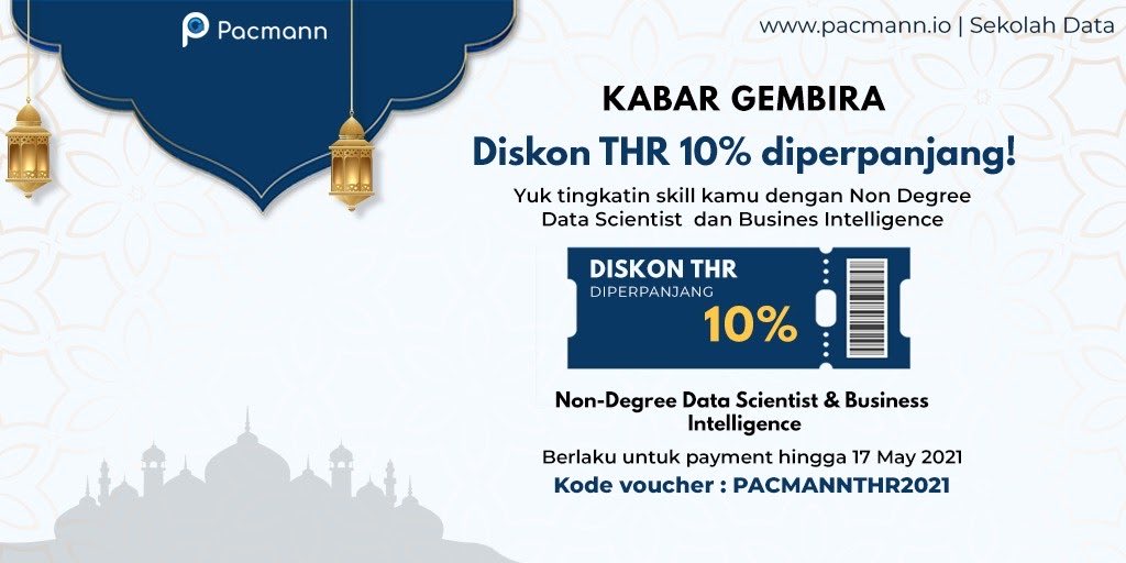 Kalian bisa cek informasi lebih lanjut tentang kelasnya di bit.ly/PacmannioTwitt…. Kalau kalian daftar sekarang, kalian masih berkesempatan buat dapet potongan THR sebesar 10% loh! Informasi nya bisa kalian cek di gambar ini ya: