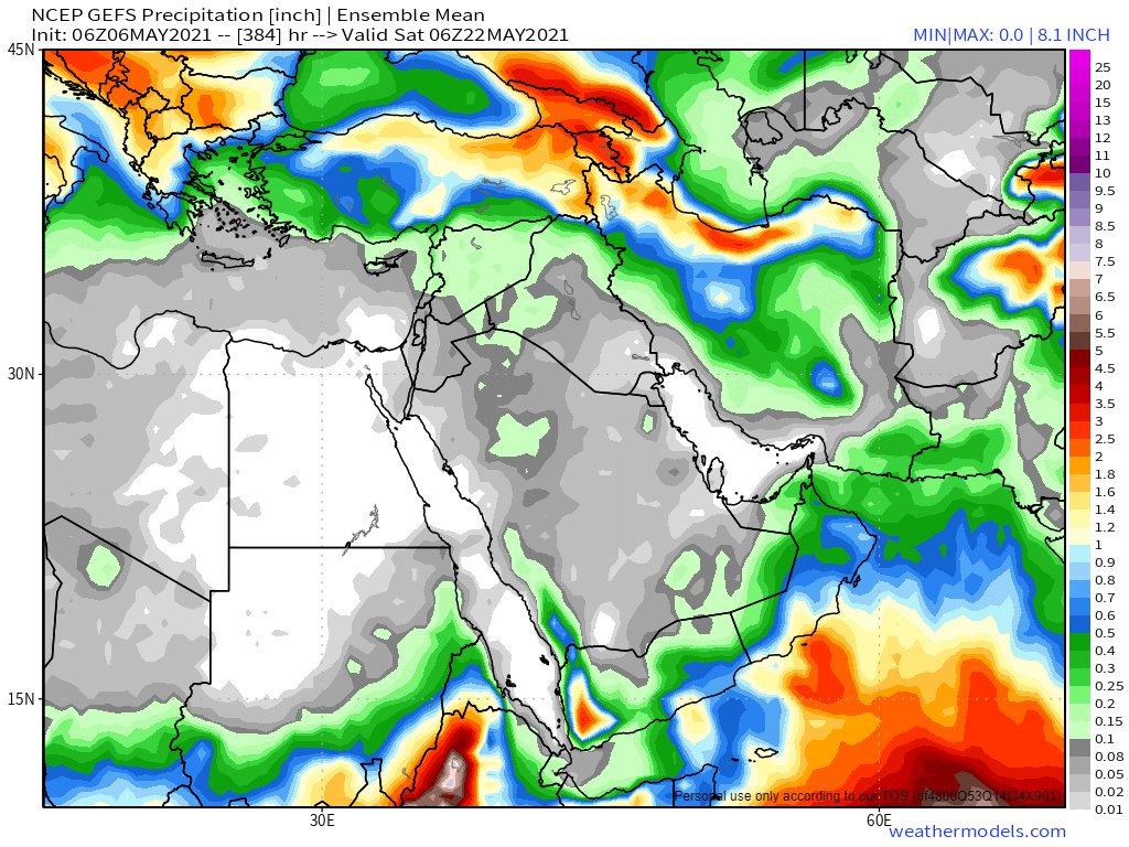 And here are today's May 6th, 3 day accumulated rain forecasts (to Saturday at Midnight), for the #MiddleEast from the GFS, ECMWF, CMC & KMA weather models.