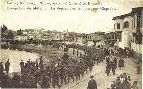 της Μυτιλήνης & να οδεύσει προς Καλλονή,με σκοπό να ενωθεί με τον υπόλοιπο στρατό.Κατά τη διαδρομή μάλιστα,οι άνδρες πέρασαν & από το εργοστάσιο του Μουζάλα & οι εργάτριες βγήκαν στο δρόμο για να τους ράνουν με σιτάρι(σύμβολο υγείας & ρώμης & φυσικά μας έρχεται από τα αρχαία🔽