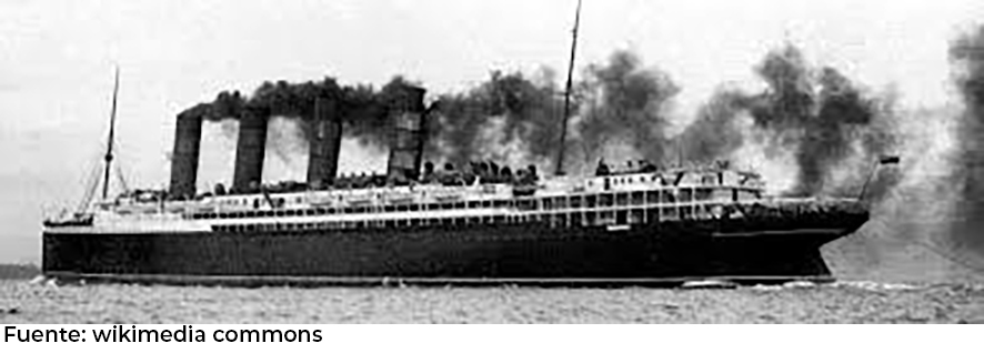 El RMS Lusitania fue un transatlántico británico de la empresa naviera Cunard Line. Fue botado en 1907. Tenía capacidad para transportar hasta 2,300 personas y los más acaudalados pasajeros podían gozar de un camarote de lujo, lo mismo que restaurantes y lugares de esparcimiento.