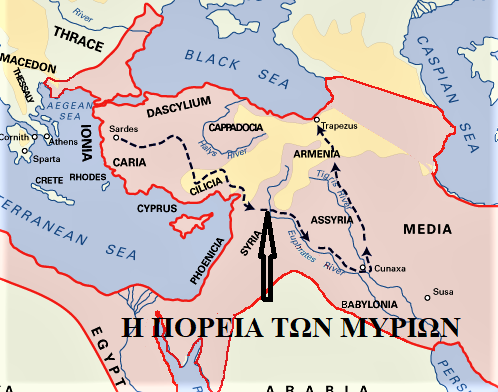 τους μεγάλους φυσικούς δρόμους επικοινωνίας.Ίσως ο Κύρος αναγκάστηκε να ακολουθήσει το δρομολόγιο αυτό από ανάγκη για ανεφοδιασμό,συλλογή χρημάτων & ενισχύσεις σε άνδρες & υλικά απαραίτητα στην εκστρατεία.Από την Κεράμων Αγορά μέχρι το Ικόνιο η όψη του τοπίου δεν αφήνει🔽
