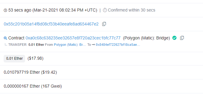 0x55c spent $19.42 worth of gas to deposit $18 worth of ETH into Polygon.