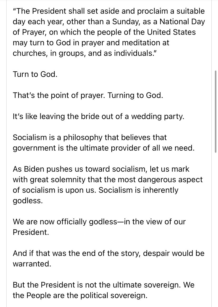 Our Commander in Chief and seat of civil government recognizing the importance of the Church as an institution necessary to a well-ordered, just, and peaceful society is truly one of the greatest pictures and moments in American history. 3/