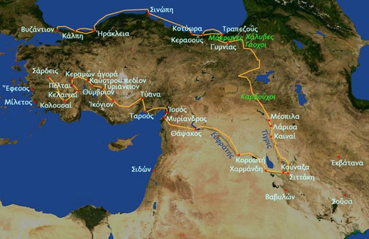 αναμφισβήτητα υπερβολικός σε αναφορά με το σημείο στο οποίο κατά προσέγγιση έπρεπε να βρίσκεται η πόλη της Θαψάκου.Επίσης, αν η πορεία των Μυρίων είχε ακολουθήσει την δεξιά όχθη του Ευφράτη μέχρι τη Θάψακα,είναι άξιο απορίας πώς ο Ξενοφώντας δεν θυμόταν το άλλωστε υποχρεωτικό🔽