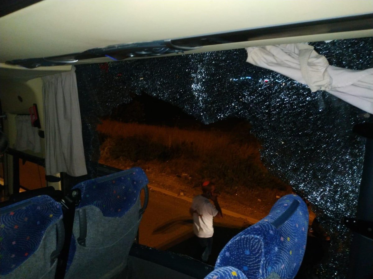 כך נראתה שמשת האוטובוס לאחר המפגש עם הפורעים הערבים בכבישי הצפון.