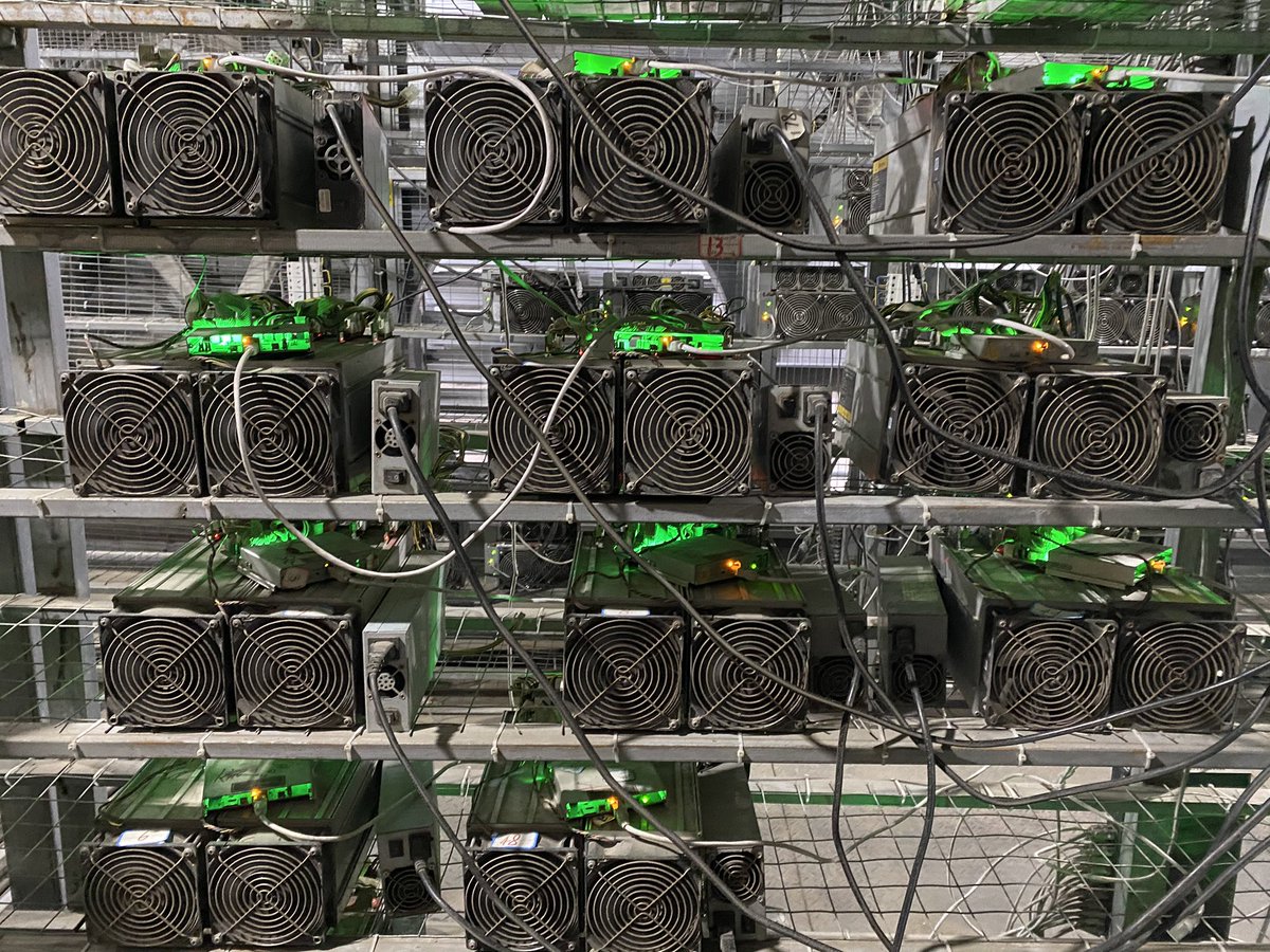 Là, quelque 4.000 ordinateurs bardés de câbles font monter les décibels et la température, 24 h/24 et 365 jours par an, dans les entrepôts. Sur leurs parois, d'immenses ventilateurs tournent à plein régime pour refroidir l'intérieur des bâtiments. #Bitcoin 🔉🔉4/