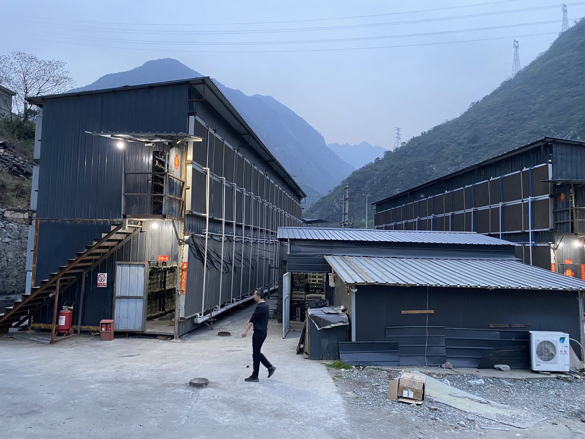 Grâce à son électricité bon marché, verte ou brune, la #Chine abrite les deux tiers des chercheurs d'or du monde numérique. Pour atteindre celle que gère Tian Qiang, il faut rejoindre Chengdu, la capitale du Sichuan, puis rouler deux heures en direction des montagnes. 3/