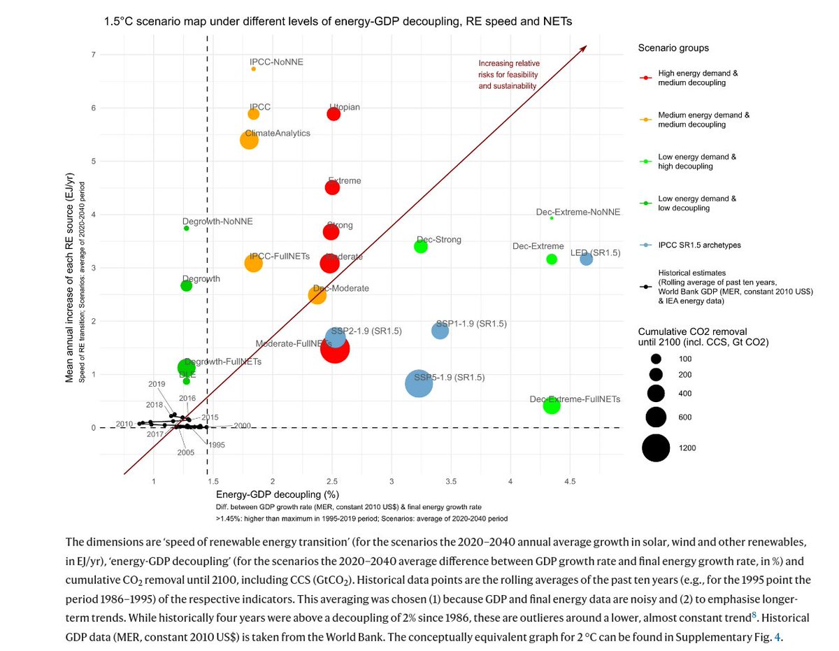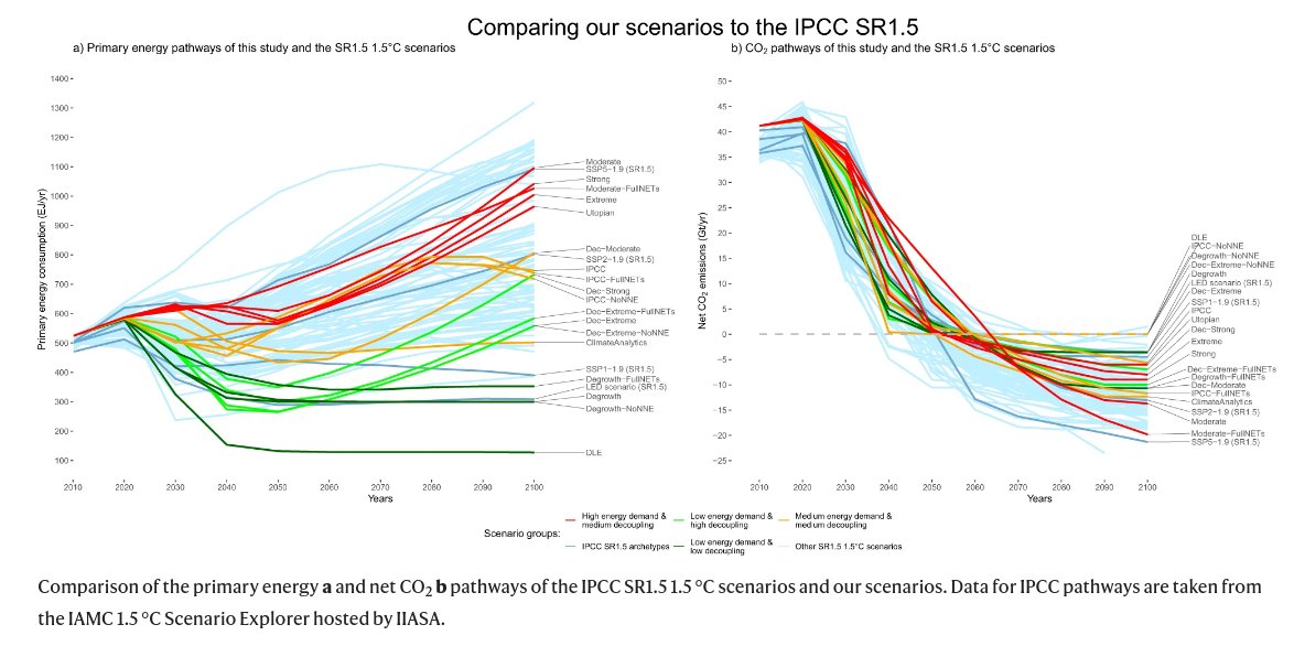 The starting point is that almost all scenarios by the integrated assessment modelling community, summarized by the IPCC, assume continued economic growth even in wealthy countries, while lack of growth is assumed to hamper mitigation. #Degrowth scenarios are neglected. /2