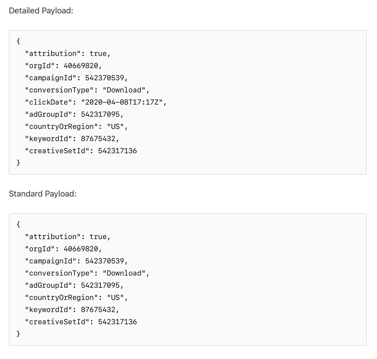 5/ And here are the docs for the new AdServices API. Developers are able to get _some_ granular data since Apple controls what’s shared and knows it can’t be use for tracking. But you still have to request permission to track to get the “Detailed Payload”. developer.apple.com/documentation/…
