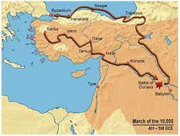 τους αριθμούς(σε πολλούς φαίνονται υπερβολικοί) που μας παρέχει η Ανάβαση(θυμόμαστε: άνω από 1.000.000 άνδρες για το στρατό του Αρταξέρξη & 120.000 για το στρατό του Κύρου).Η αποστολή,επιδιώκοντας να ακολουθήσει με βάση τις ανακαλύψεις που είχε κάνει στην περιοχή,τη γραμμή🔽