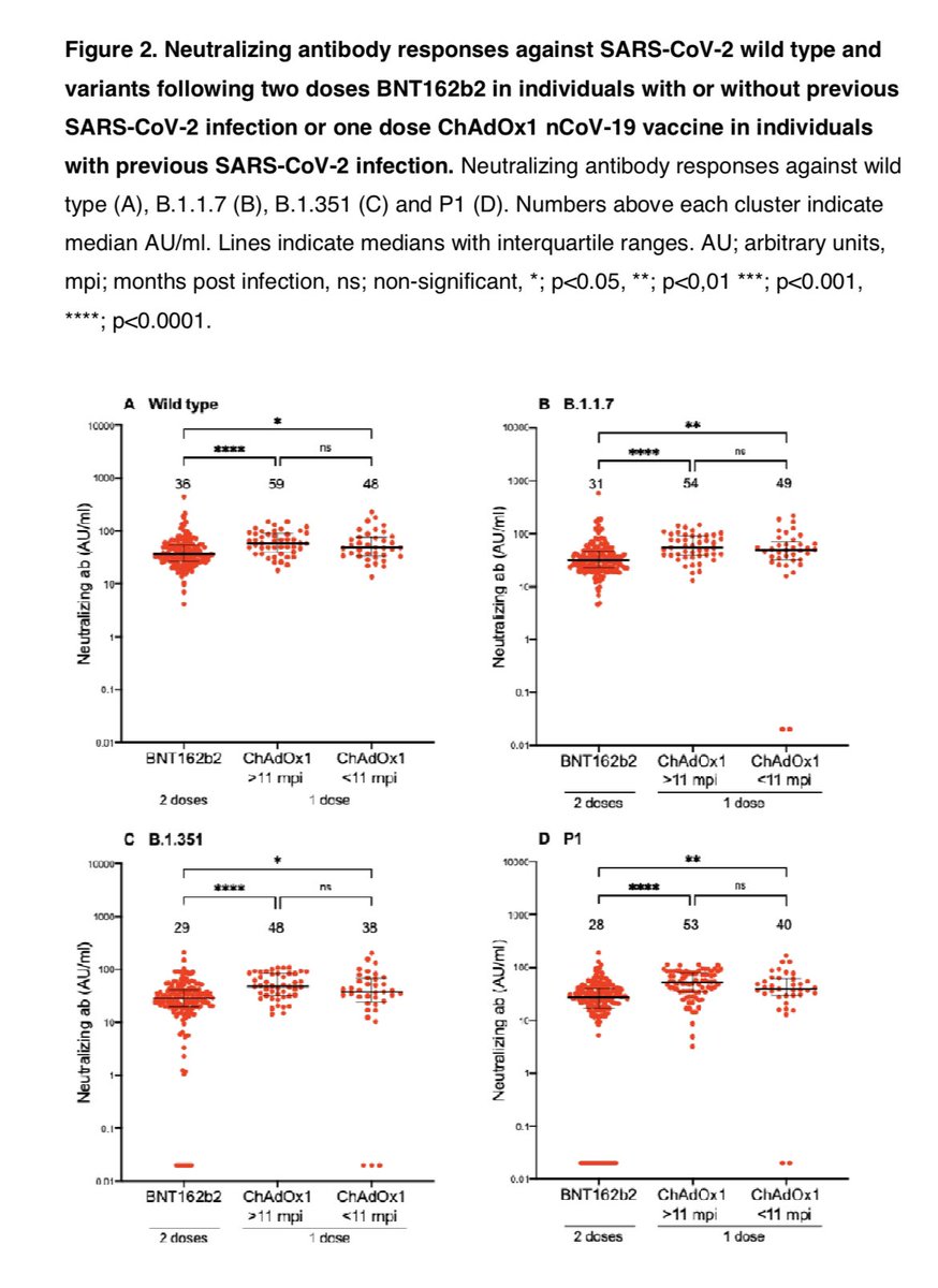 In fact those who had COVID-19 in the past and took a single dose of AZ (COVISHIELD) had higher neutralizing antibodies than those who took 2 doses of Pfizer mRNA vaccine! That’s right - past infection plus 1 dose AZ higher nAbs than 2 doses of Pfizer! 3/