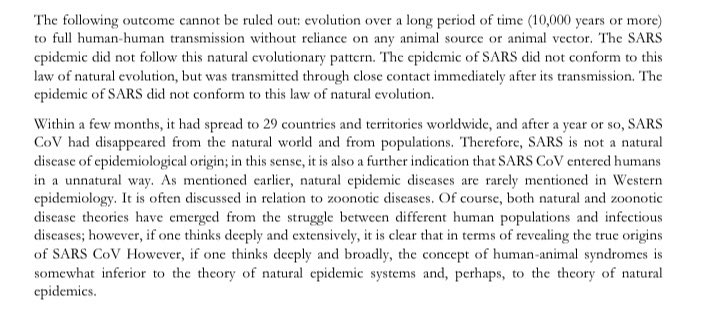 PLA Scientists - SARS CoV has not followed Natural Evolution theory i.e. jumping inter species from any animal source to Humans. SARS entered humans in an unnatural way. [2015 - Book] !