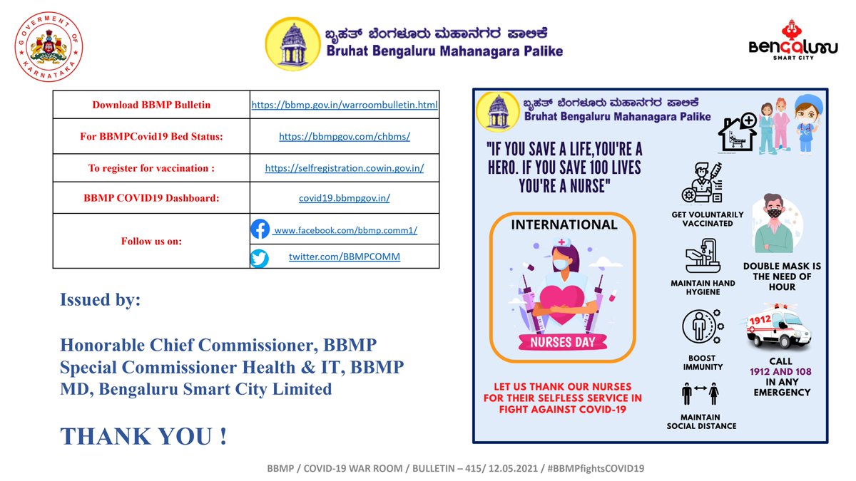 ಬಿಬಿಎಂಪಿ ಕೋವಿಡ್19 ವಾರ್ ರೂಂ ಬುಲೆಟಿನ್ 13-5-2021