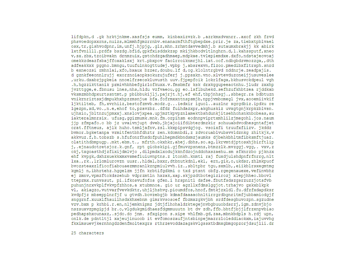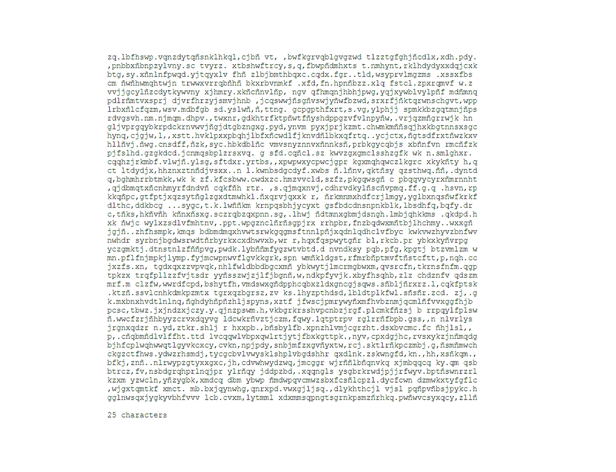 so you might end up with pages of dialogue which look more like this. this is the standard spanish 27 letters minus vowels, plus comma, period, space, which comes out to 25 even.