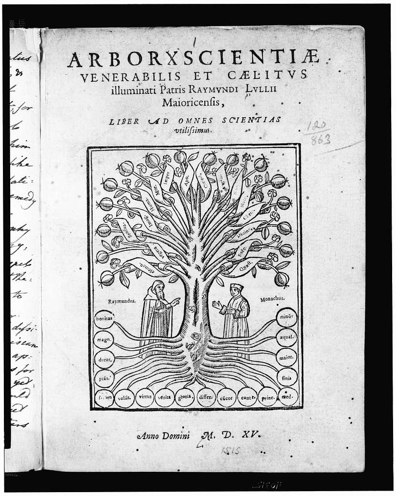 one of Llull's avenues of research was an attempt to find the atoms of thought. he believed that if you constructed the right system, you could procedurally generate all possible knowledge.