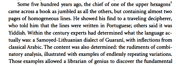 but Borges has a eurocentric bent, and i think it's entirely possible that he imagined this other universe as being imbued with western cultural artifacts. it is, after all, a device reflecting on human experience, not a self-consistent reality.