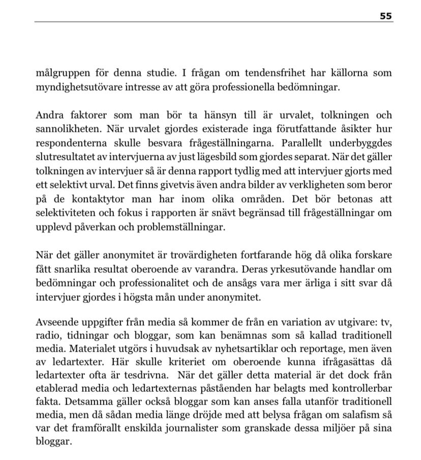 Det handlar om ss. 54–55 och rapporten finner ni här: diva-portal.org/smash/get/diva… Det första som kan anmärkas på är förstås att det inte räcker med att ha ett avsnitt där olika typer av källor, liksom källkritiska kriterier, beskrivs och diskuteras. Källkritik måste tillämpas på alla
