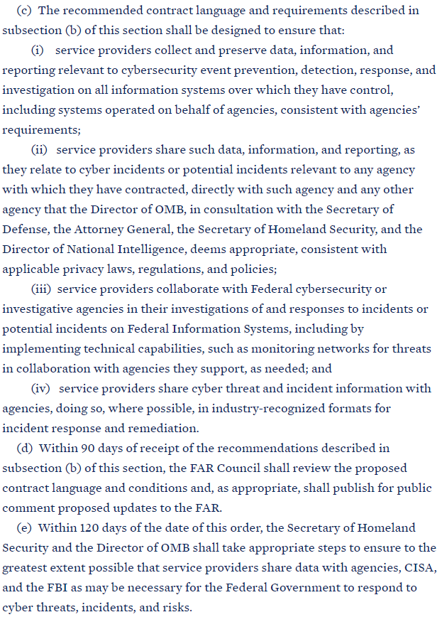 OMB must recommend to federal acquisition officials a major overhaul of contracting language with new cybersecurity requirements for IT service providers that contract with the government.