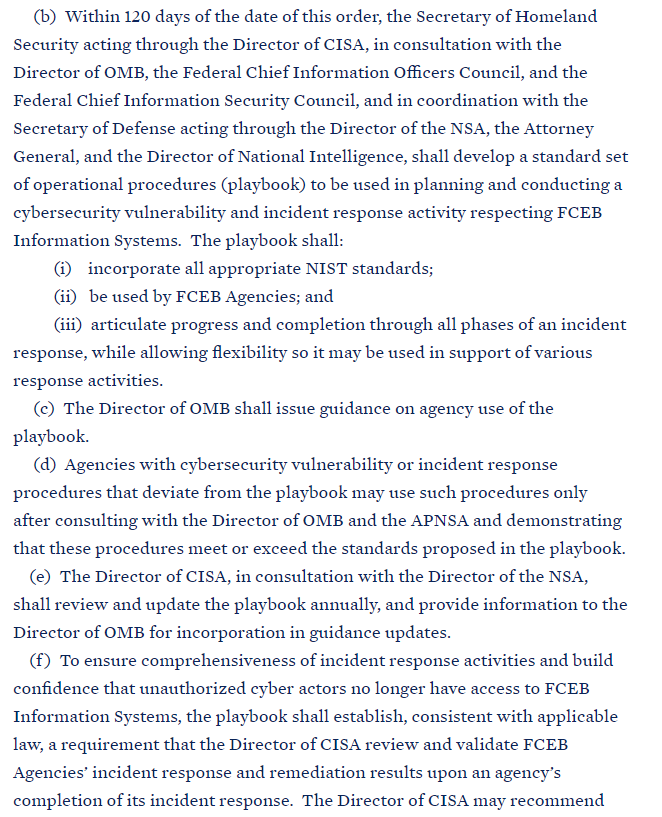 * CISA must create incident response playbooks so all agencies are responding in a consistent way