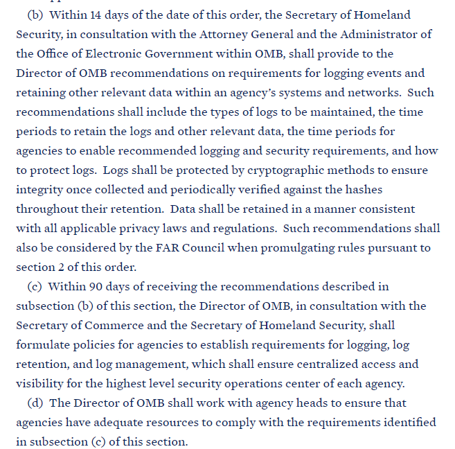 * DHS must recommend a log retention policy and OMB must review and issue it