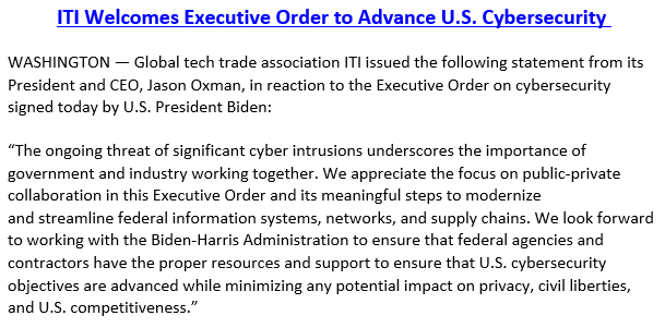 Some praise from industry groups — many of whose members will have to comply with the new security regulations — for Biden's cyber EO.