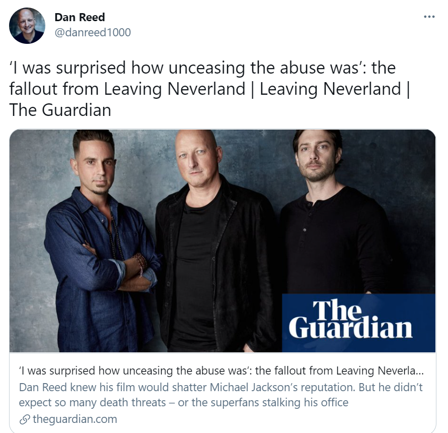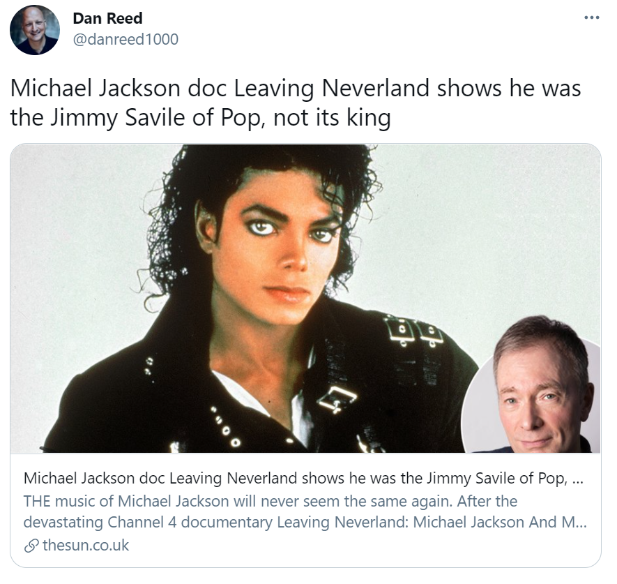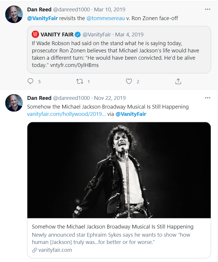Note how Dan likewise shares Vanity Fair stories about MJ on Twitter.