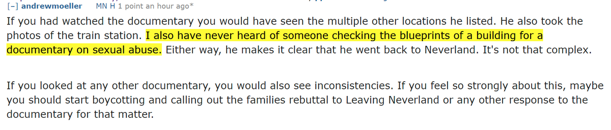 "I also have never heard of someone checking the blueprints of a building for a documentary on sexual abuse."