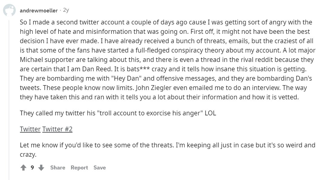 Before the drama of Dan/RMJS spinning careless alt-account antics as conspiracy, AM spawned on Reddit—mostly taking refuge in the "No Defenders" guilter sub.