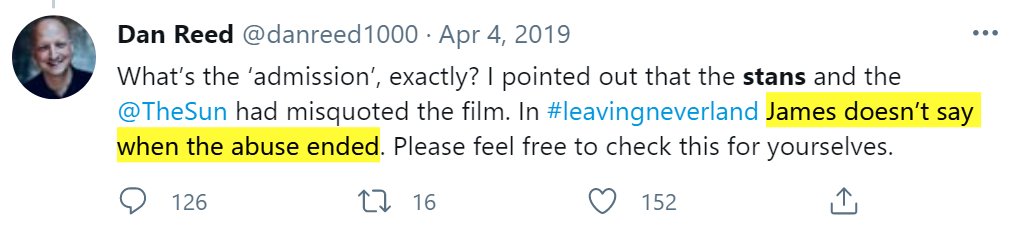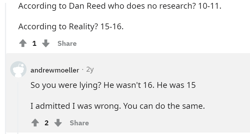A user quotes the interview where Dan falsely claimed James was only 10 or 11 at that time (he was 16).