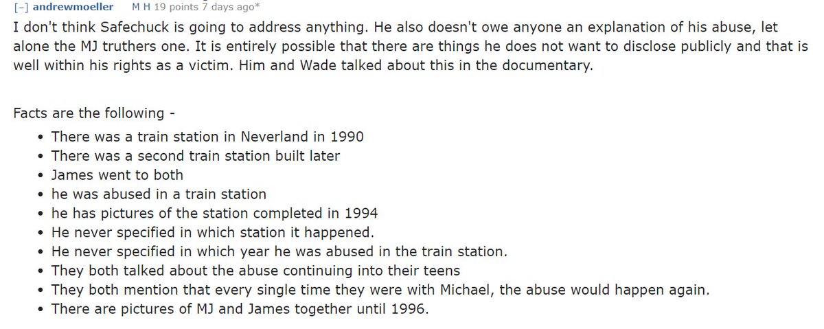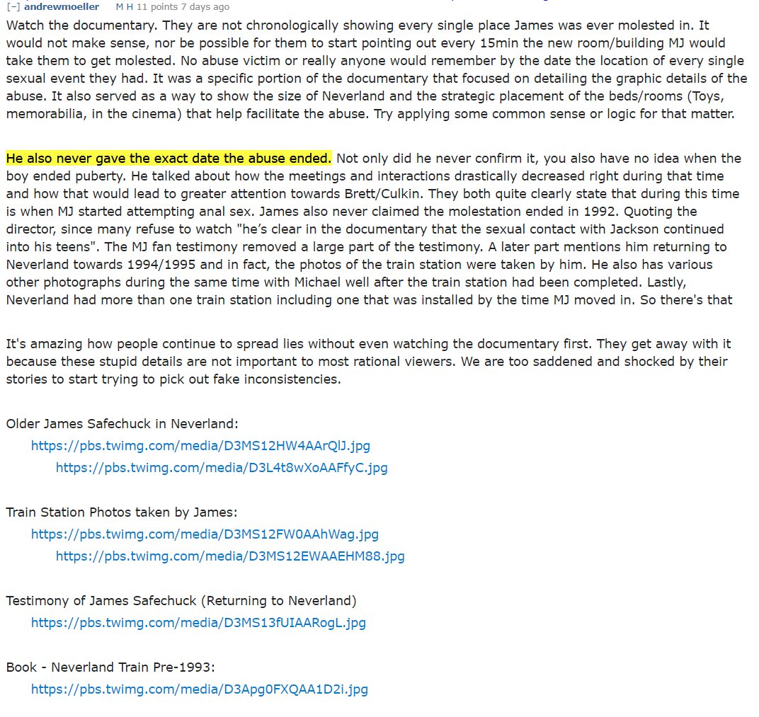 Apparently oblivious to 5 years of litigation to the contrary, his own film describing this occurring early on (between 1987 & 1990 interludes) & his own media narrative that MJ abandoned kids at puberty.