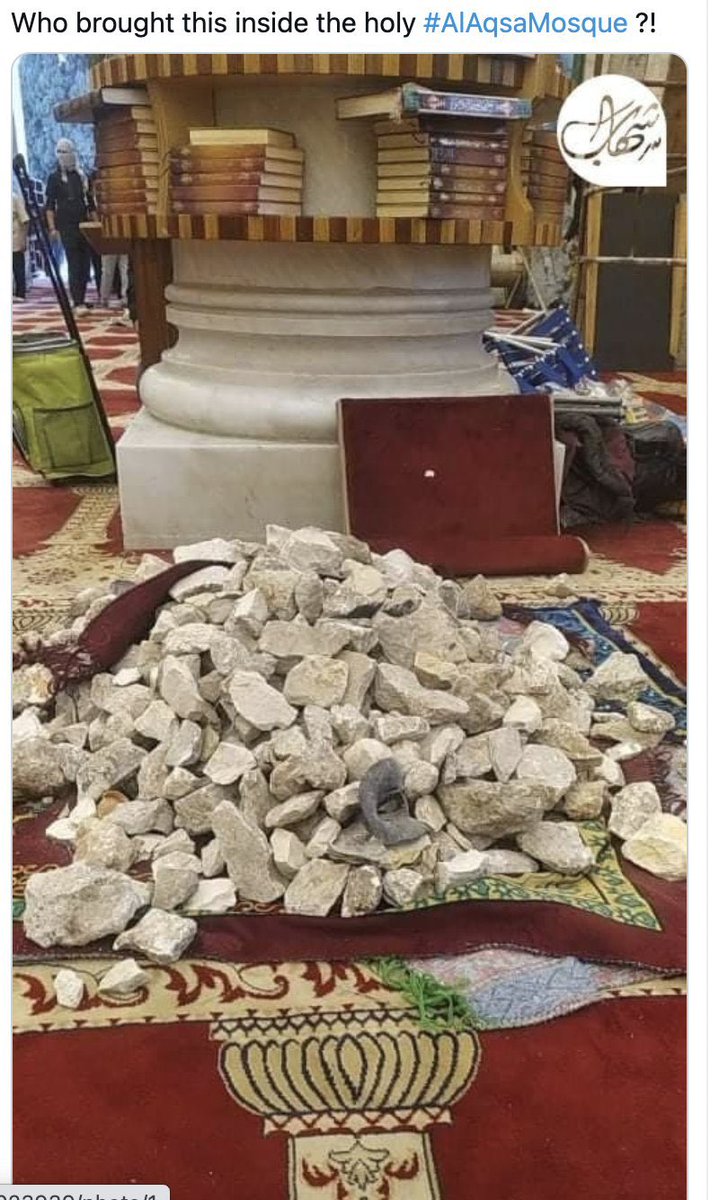 You are a Lib-Dem MP spouting untruths, lies. In the pictures, explain why Arabs desecrate al-Aksa with rocks, knives, weapons, fireworks, Molotov cocktails? Explain how