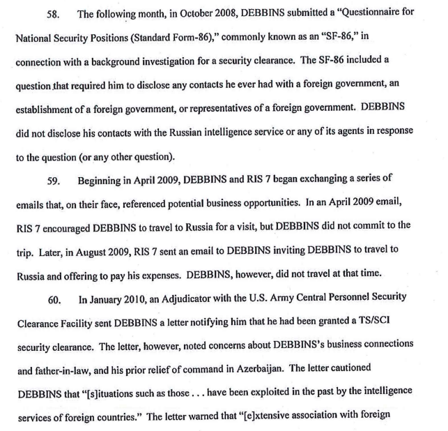 He filled out his SF-86 form in 2008 for his security clearance, did not mention his Russian contacts, and received top secret/sci clearance in 2010, per court documents.