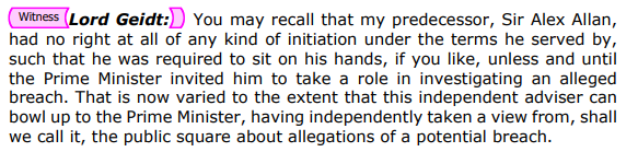 Similarly, Lord Geidt's evidence revealed the weaknesses of the current system. Lord Geidt made much of the fact that he has new terms of reference for the role. But are these really substantive changes?