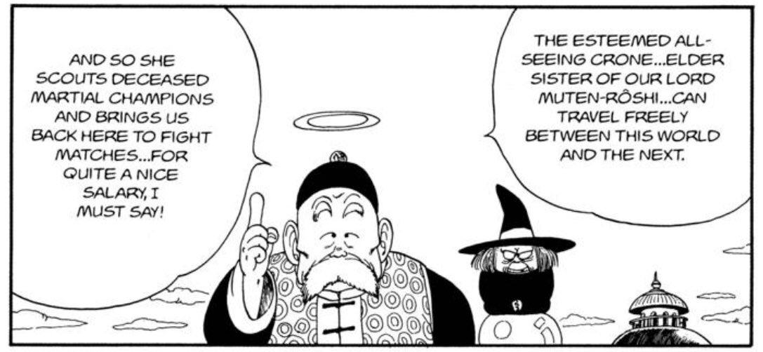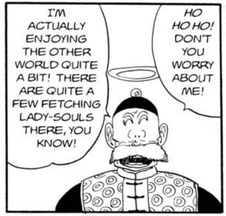 Meanwhile, Gohan receives first-class treatment in the afterlife, keeping his body like the other dead martial arts masters, and getting lucrative contracting work from time to time. Goku himself will later get much the same deal when he dies (minus the contracting gigs)