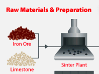 -So Iron ore powder with limestone is processed through the Sinter plant to make Iron ore lumps