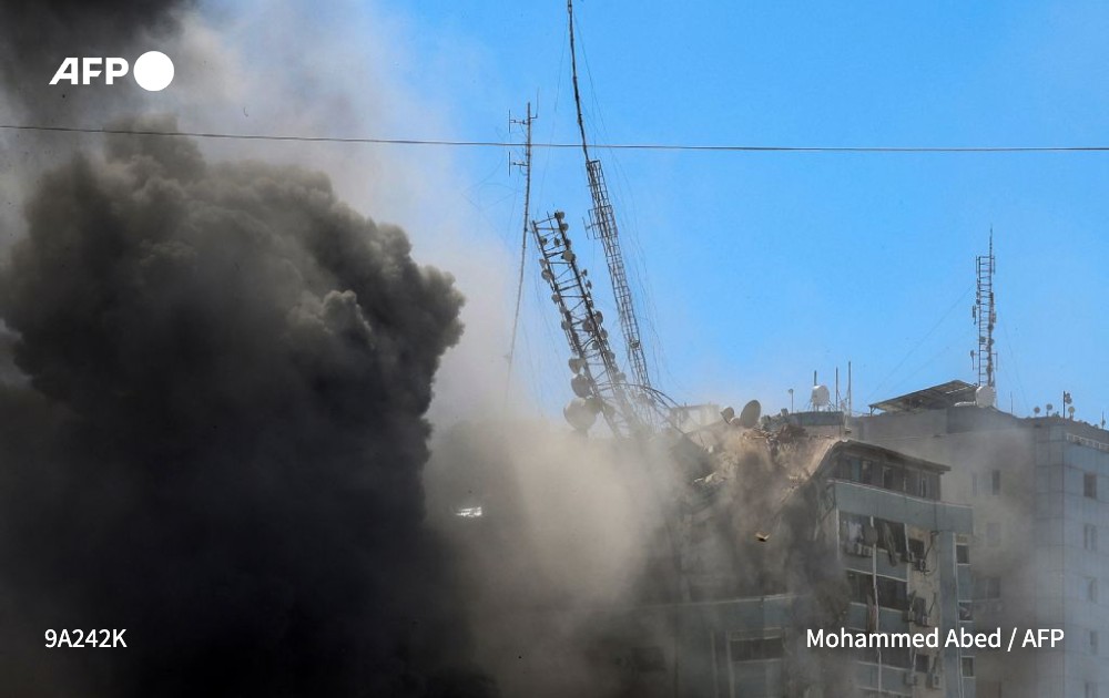 L'armée israélienne a mené une frappe sur l'immeuble d'une dizaine d'étages abritant les locaux de la chaîne de télévision qatarie Al-Jazeera et l'agence de presse américaine Associated Press (AP), dans la bande de #Gaza#AFP