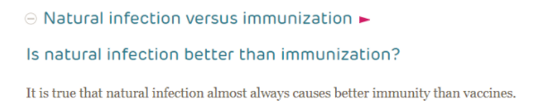 It says that natural immunity almost always causes better immunity than vaccines.