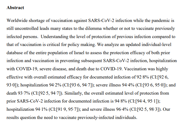 3. The one major real world study comparing the two types of immunity for covid shows both are great, but natural is a little better.
