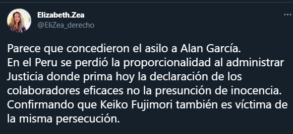 Elizabeth Zea. ¿Recuerdan cuando Alan decía que había una persecución en su contra? Zea opinaba lo mismo.