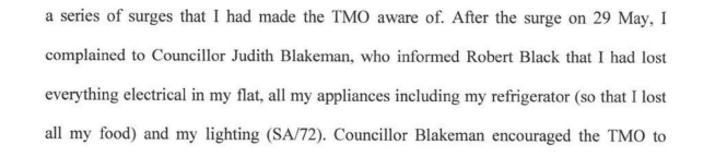 He accepts therefore that Mr Daffarn "might have had a point" but still insists it was not a "fascist decant policy". On the power surges, he told the inquiry that it was found not be a fire risk and the damage was "very, very small beer", ie broken toasters and blown fuses.