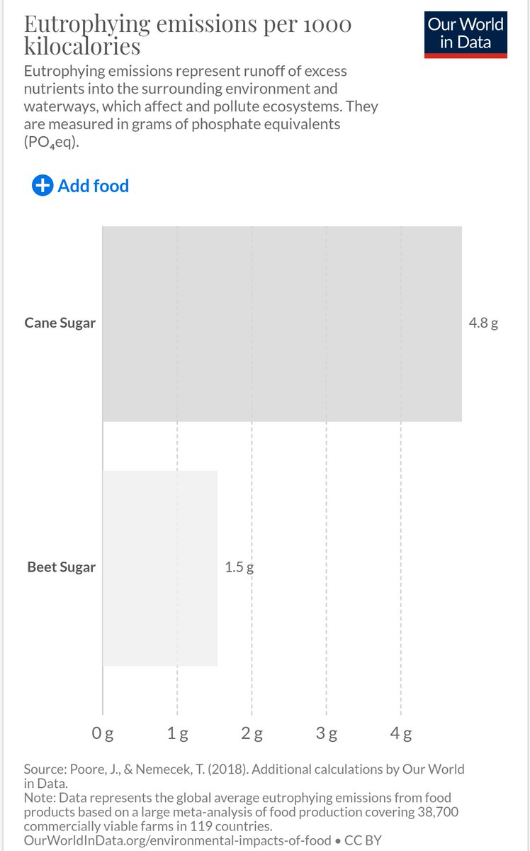 But cane sugar generally has a bigger, badder impact on the environment than goody two shows homegrown beet sugar.