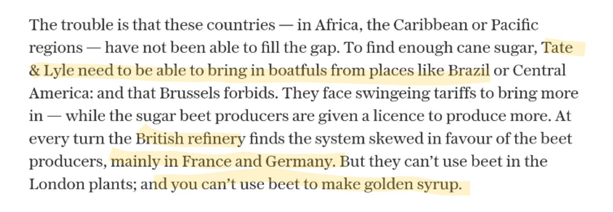 It turns out that big, blue factory can't make a decent enough profit buying fair-trade cane sugar from poor countries. They can only compete with cleaner, greener homegrown π¬π§ beet sugar, by getting tariff-free deals to import the cheapest stuff, produced in ways illegal here.